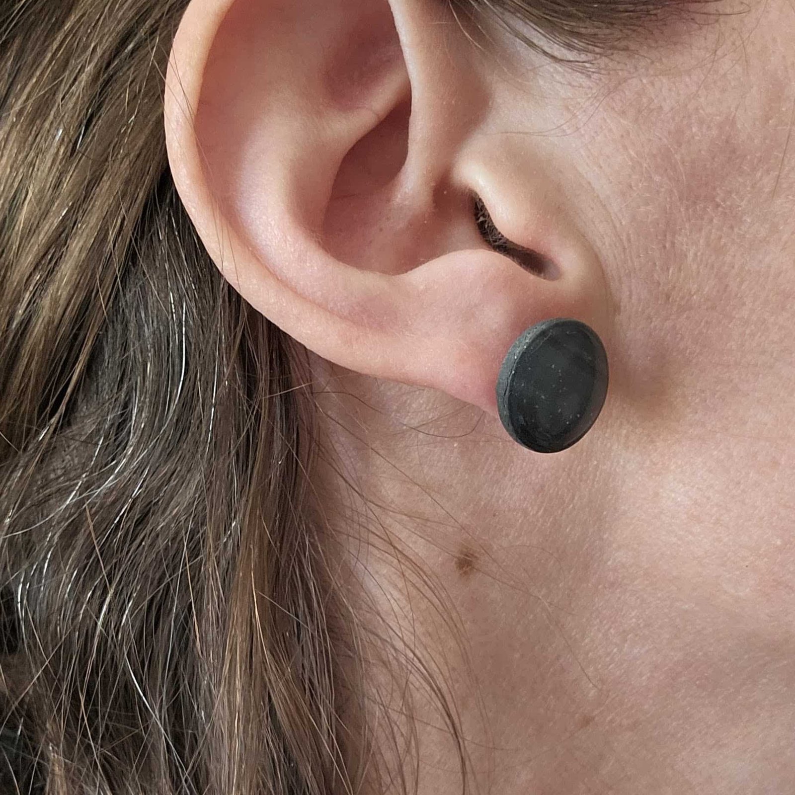 Discretos pendientes de botón artesanales con arcilla polimérica de tonos grisáceos y cubierto con una capa de resina. El enganche es un poste de acero inoxidable. Este precioso modelo artesanal está inspirado en la Luna y en su magia tan especial.