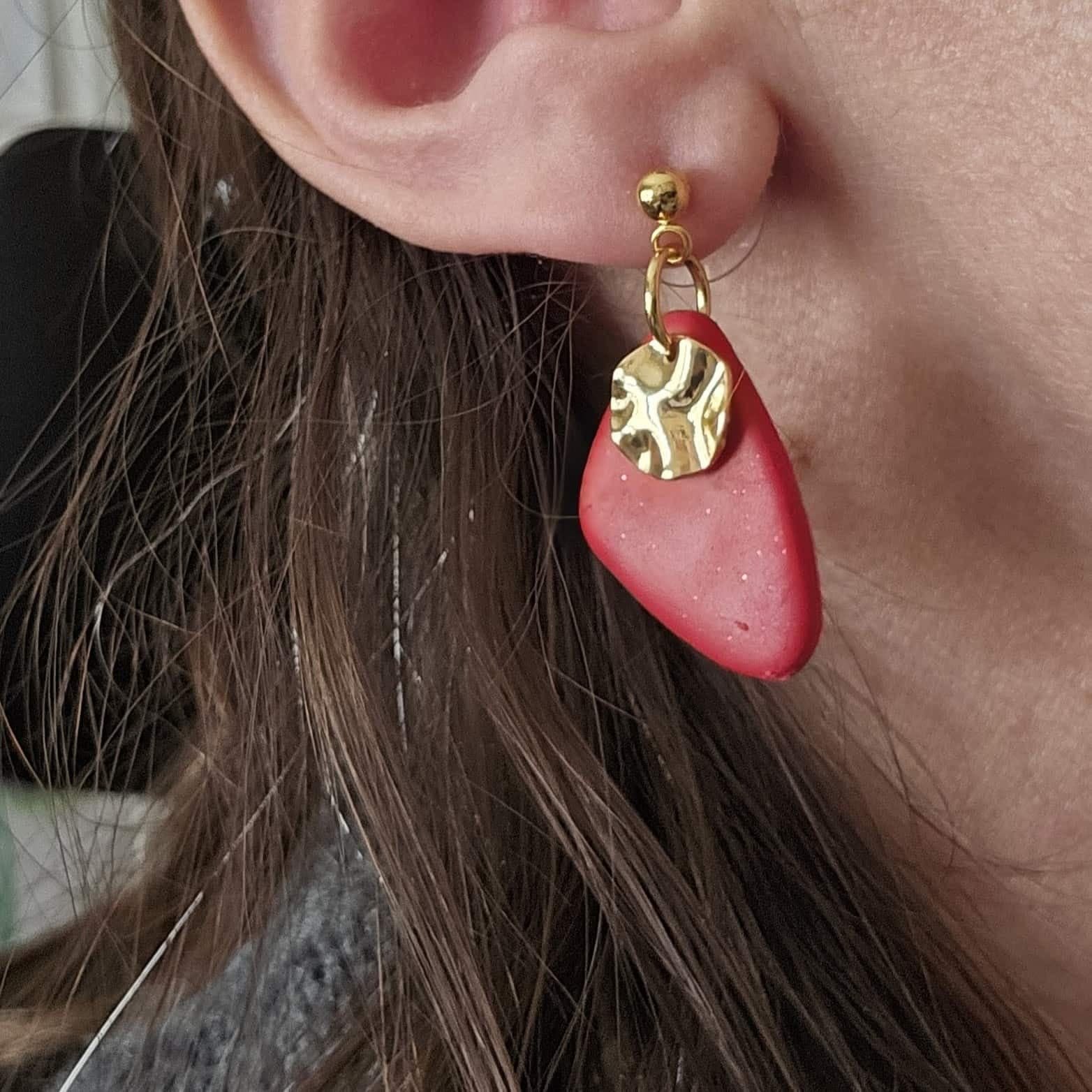 Los enganches de pernos de acero inoxidable permiten que puedas mantener tu piel segura y libre de rojeces y la arcilla polimérica garantiza que la pendiente pese poquito y el lóbulo no se deforme.