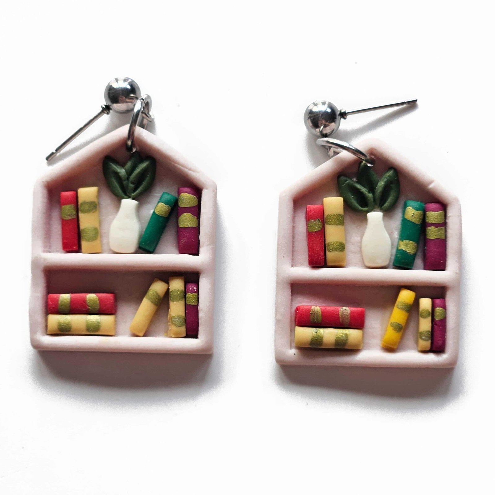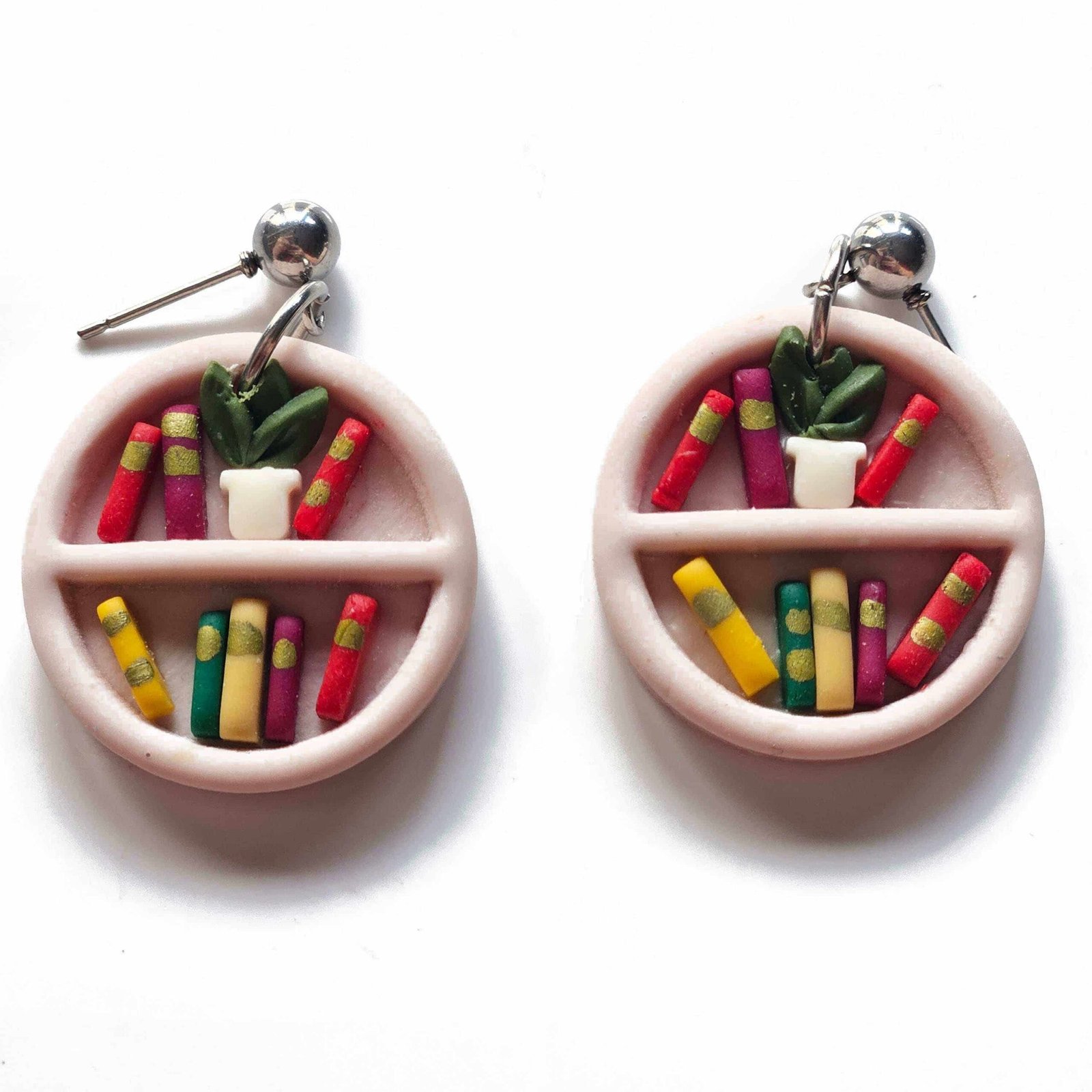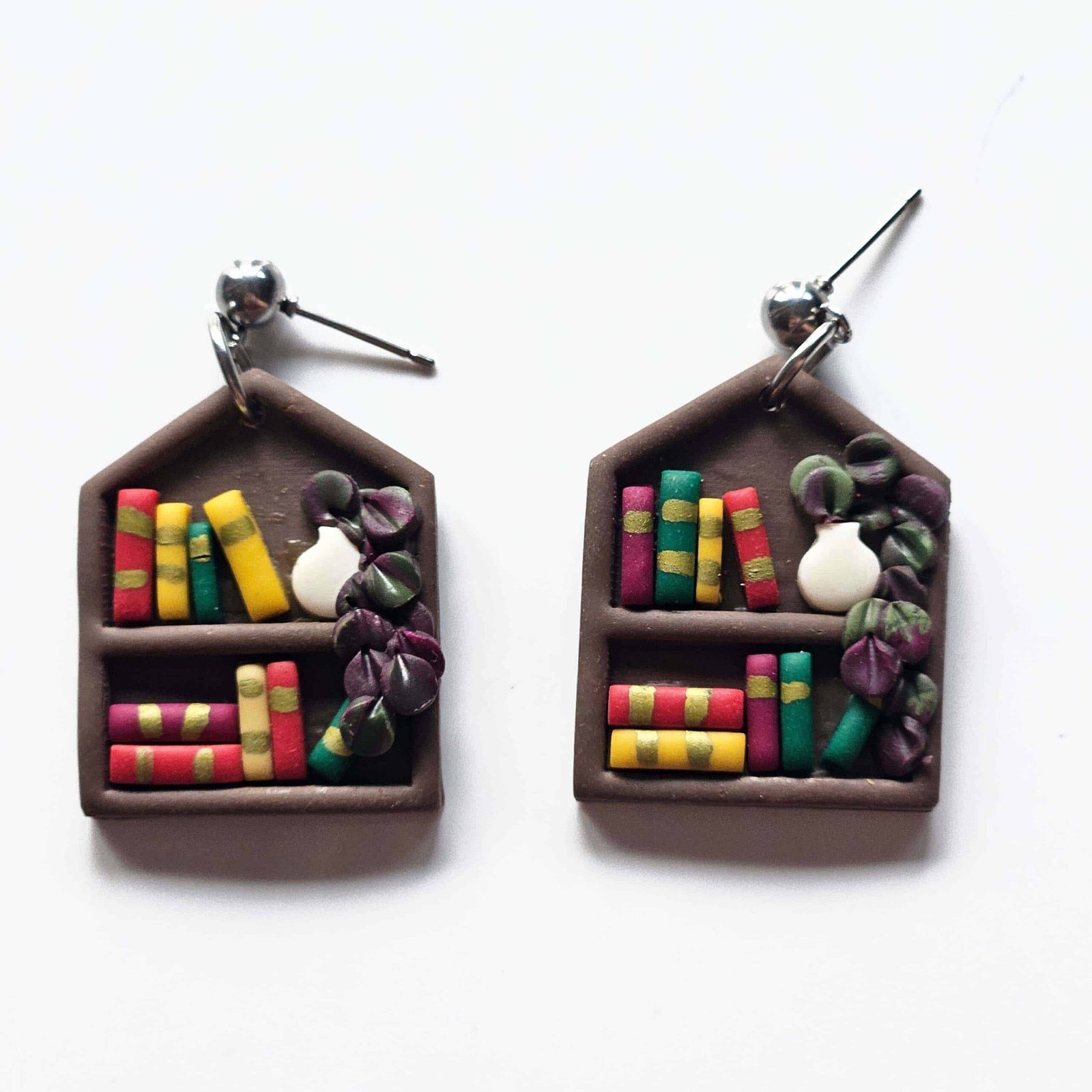 Cada pendiente recrea con minucioso detalle una biblioteca en miniatura: lomos de libros llenos de color que guardan mil aventuras y pequeñas plantas que aportan un toque de vida y frescura. Un diseño de inspiración bookish y botánica que evoca la calidez de tu rincón favorito de lectura.