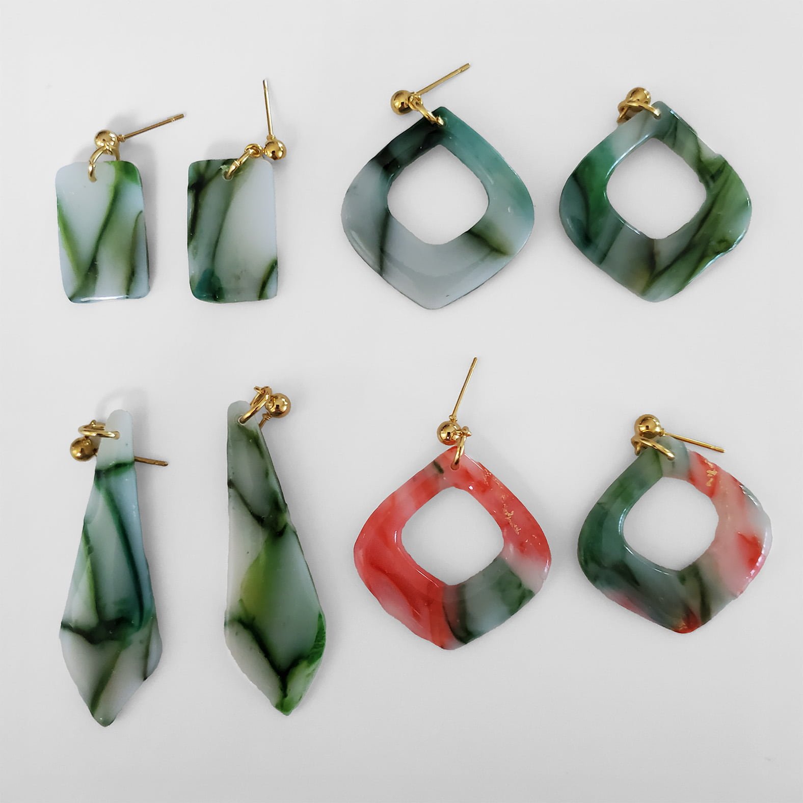 Descubre la colección Sira, nuestros nuevos pendientes de arcilla polimérica translúcida hechos a mano. Estos pendientes están hechos a mano con arcilla polimérica traslúcida, logrando un efecto de aguas en tonos verdes y corales que recuerda al vidrio marino o a las piedras de río pulidas. Cada pieza ha sido cubierta con una capa de resina de alta calidad, lo que les otorga un acabado brillante y pulido que resalta la profundidad de sus vetas y asegura una mayor durabilidad.