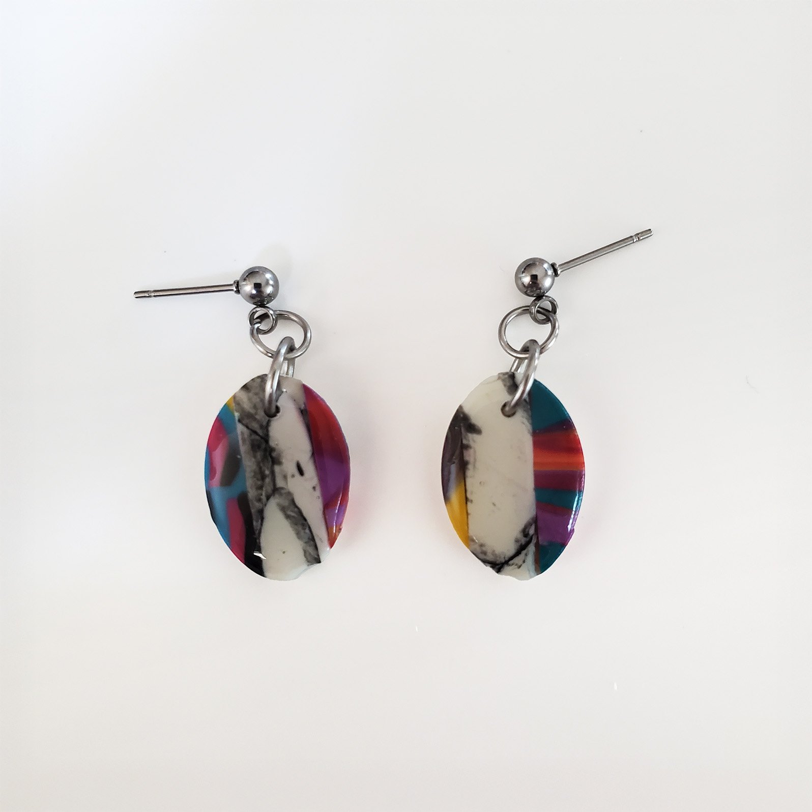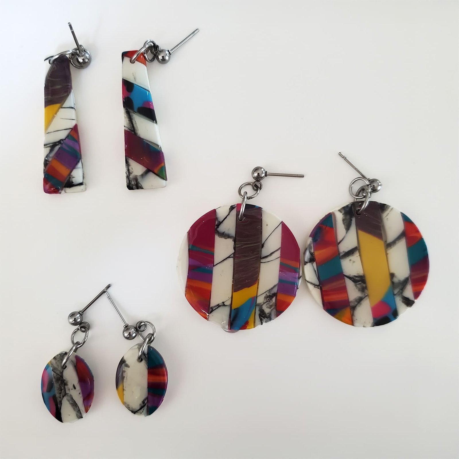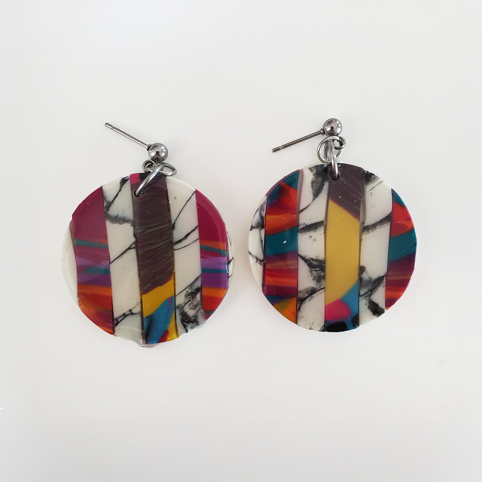 Al ser diseños únicos, solo existe un par de cada modelo (circular, ovalado y geométrico), lo que garantiza que llevas una joya irrepetible. A pesar de su apariencia sofisticada y su acabado vitrificado, estos pendientes de resina y arcilla pesan muy poquito, ofreciendo la máxima comodidad sin renunciar a un estilo audaz.