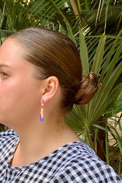 Divertidos y frescos pendientes hechos artesanalmente con arcilla polimérica translúcida. Esta se ha teñido de diferentes colores para aportar luz a tu rostro y combinar con todos tus outfits veraniegos. Vienen recubiertos con una fina capa de resina. Los enganches son de acero inoxidable.